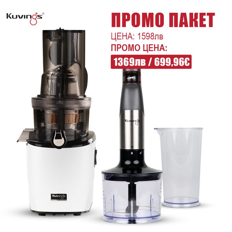 Промоционалният пакет от сокоизстисквачката Kuvings REVO830 и ръчния блендер Kuvings MIXPRO1000 е прекрасна комбинация от най-използваните уреди във всяко модерно домакинство. Произведени в Корея.