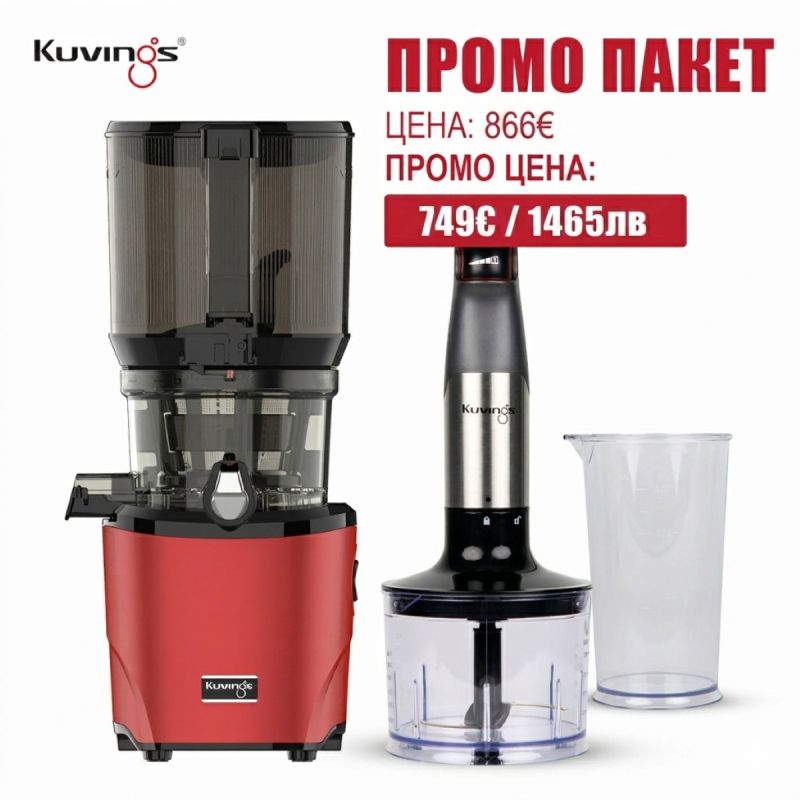 Промоционалният пакет от сокоизстисквачката Kuvings AUTO10s и ръчния блендер Kuvings MIXPRO1000 е прекрасна комбинация от най-използваните уреди във всяко модерно домакинство. Произведени в Корея.